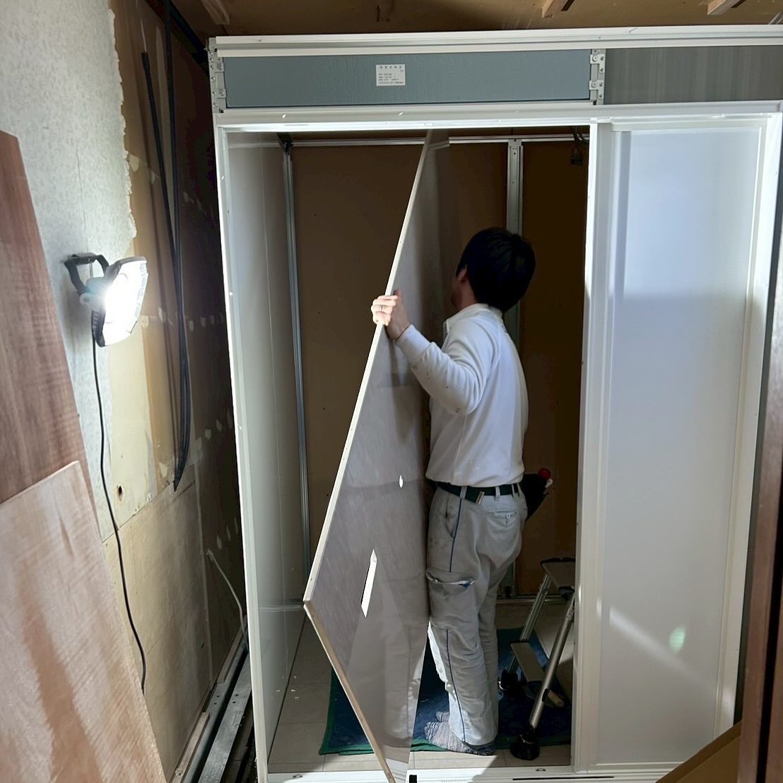 交換工事と一緒に床をCFと壁・天井のクロス張りも行いました。
