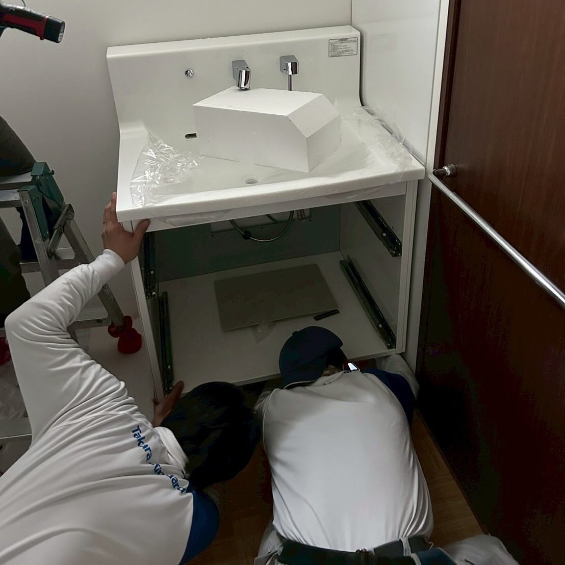 洗面所リフォームに伴い、洗面化粧台を新しく交換しました。