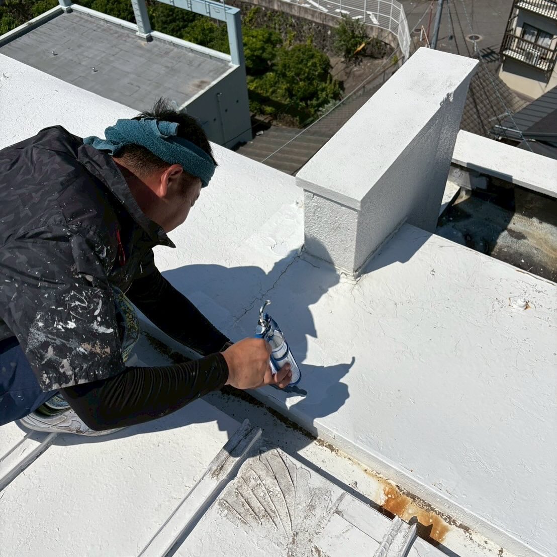 屋上から雨漏りしていたため、防水工事を行いました。