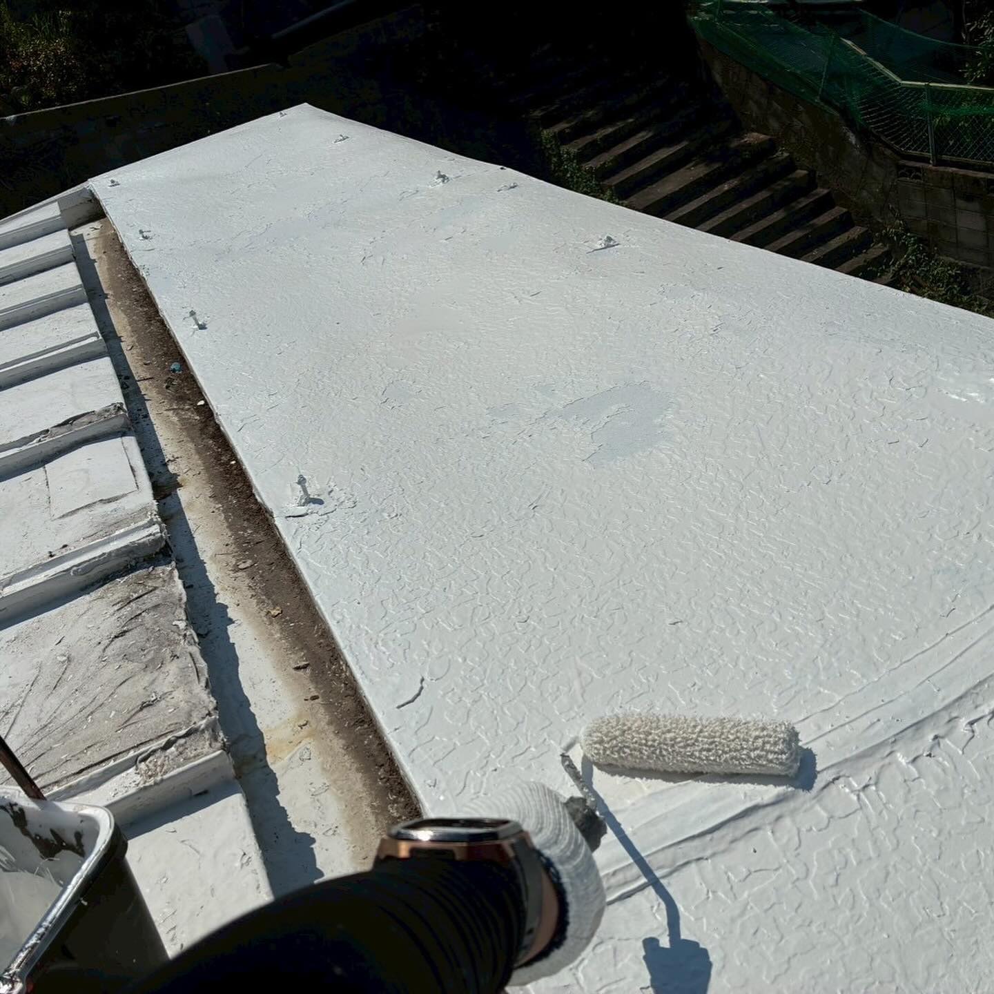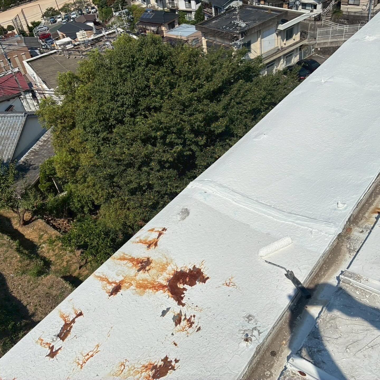 綺麗に掃除をした後、下塗りシーラーを塗り、防水用の塗料で下塗り、中塗り、上塗りで防水工事を行いました。
