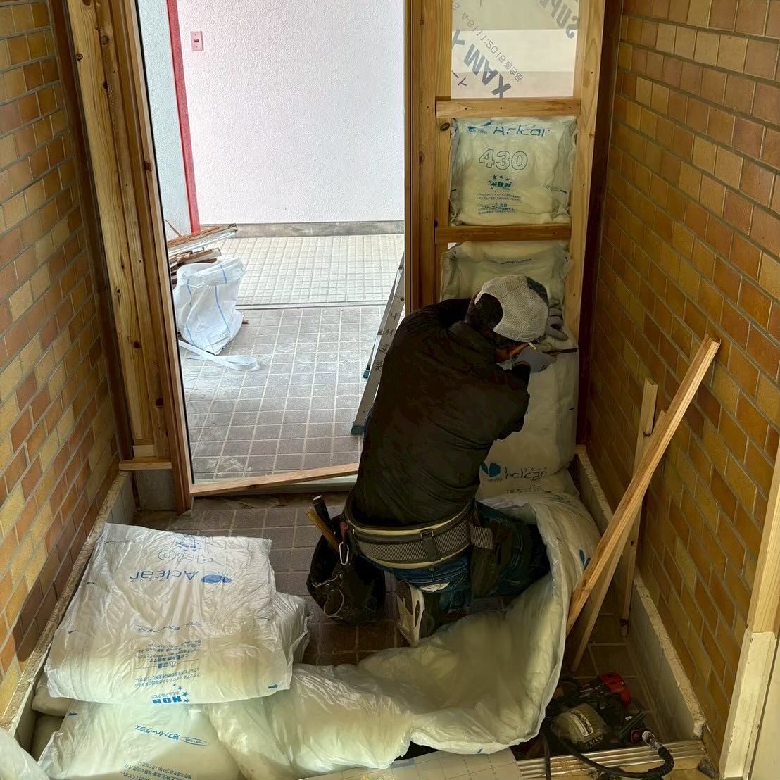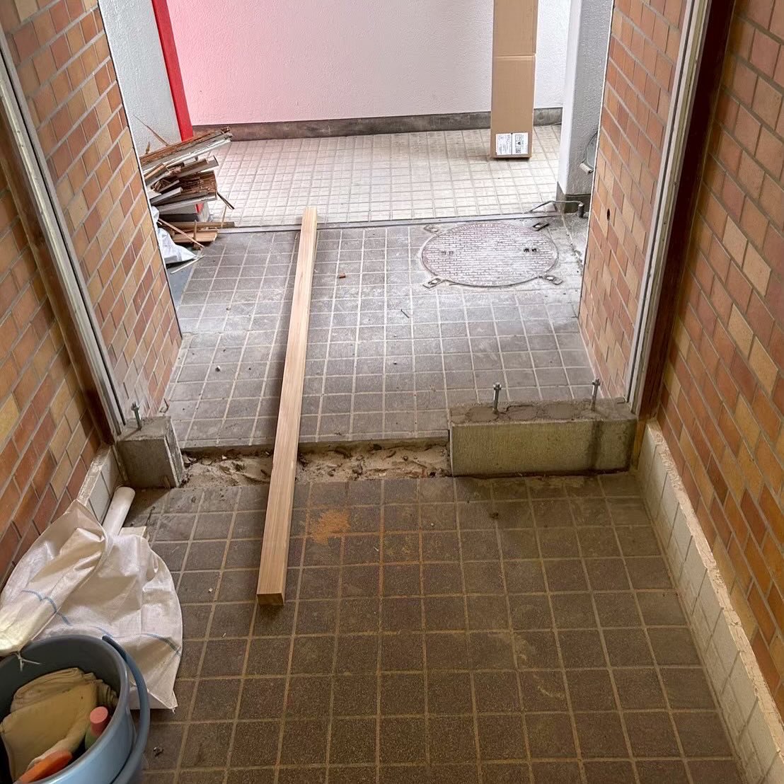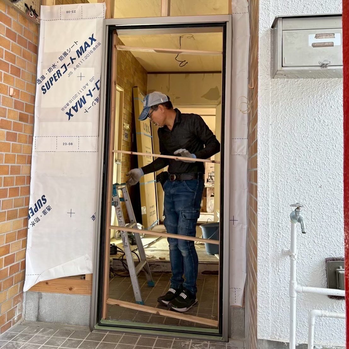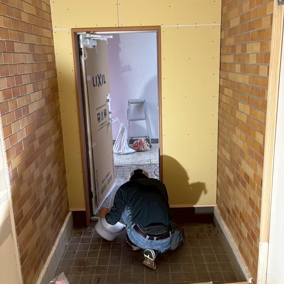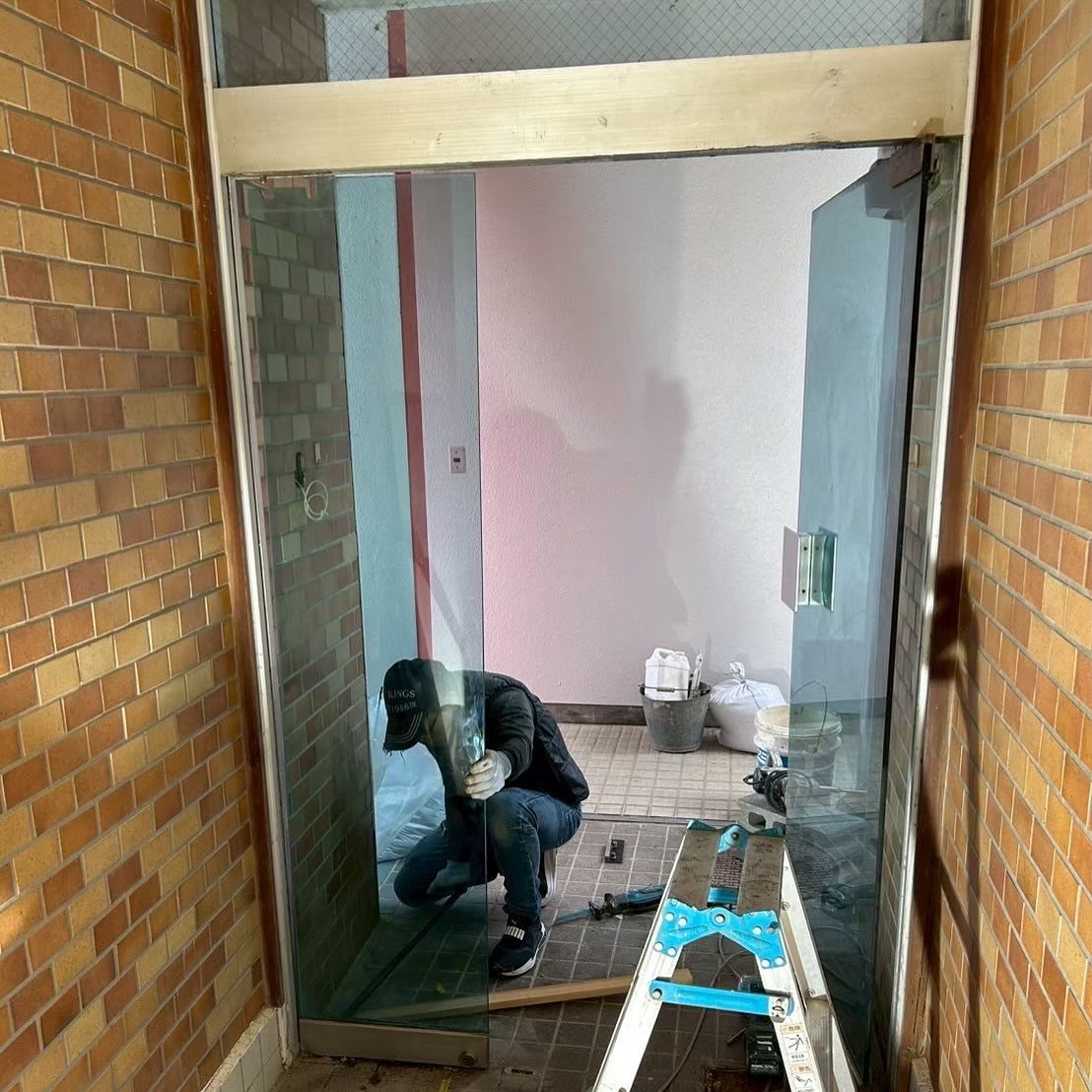 昔、事務所だったガラス扉を普通の玄関へ取替のご依頼をいただいたため工事を行いました。