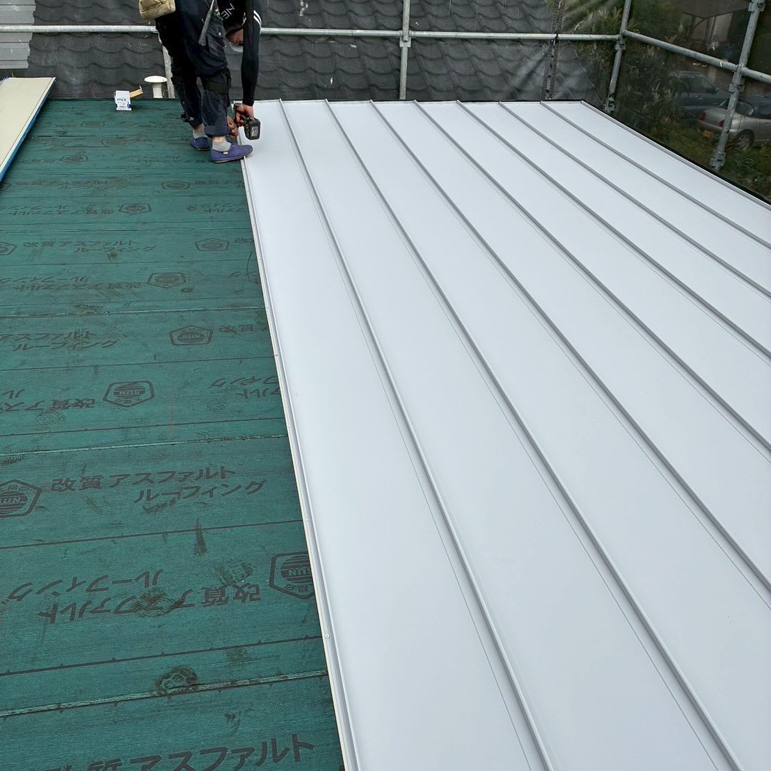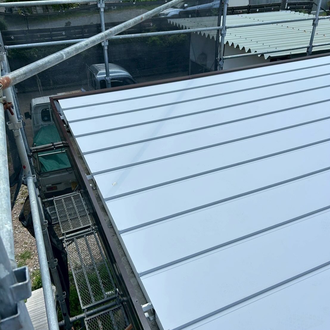 屋根工事のご依頼をいただきましたのでコスト削減のため、屋根カバー工事を行いました。
