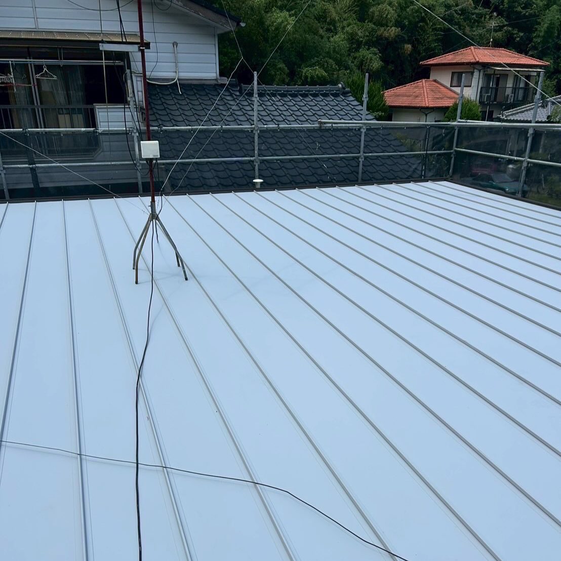 台風10号の影響でベランダが損壊しましたので、ベランダを撤去して金属屋根の葺き替え工事を行いました。