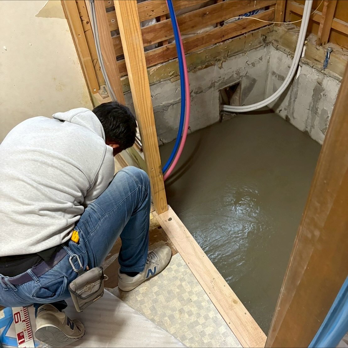 床重ね貼り、UB・キッチン・トイレ・洗面化粧台、クロス張替工事。