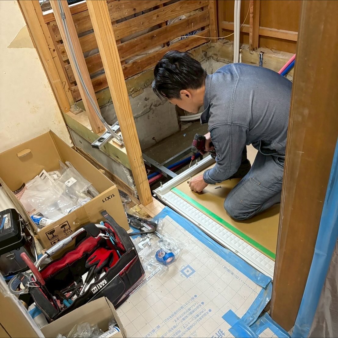 浴室はタイルからシステムバスに交換し、洗面脱衣所の床もシロアリの被害に合いましたので、床の張替え工事をしました。