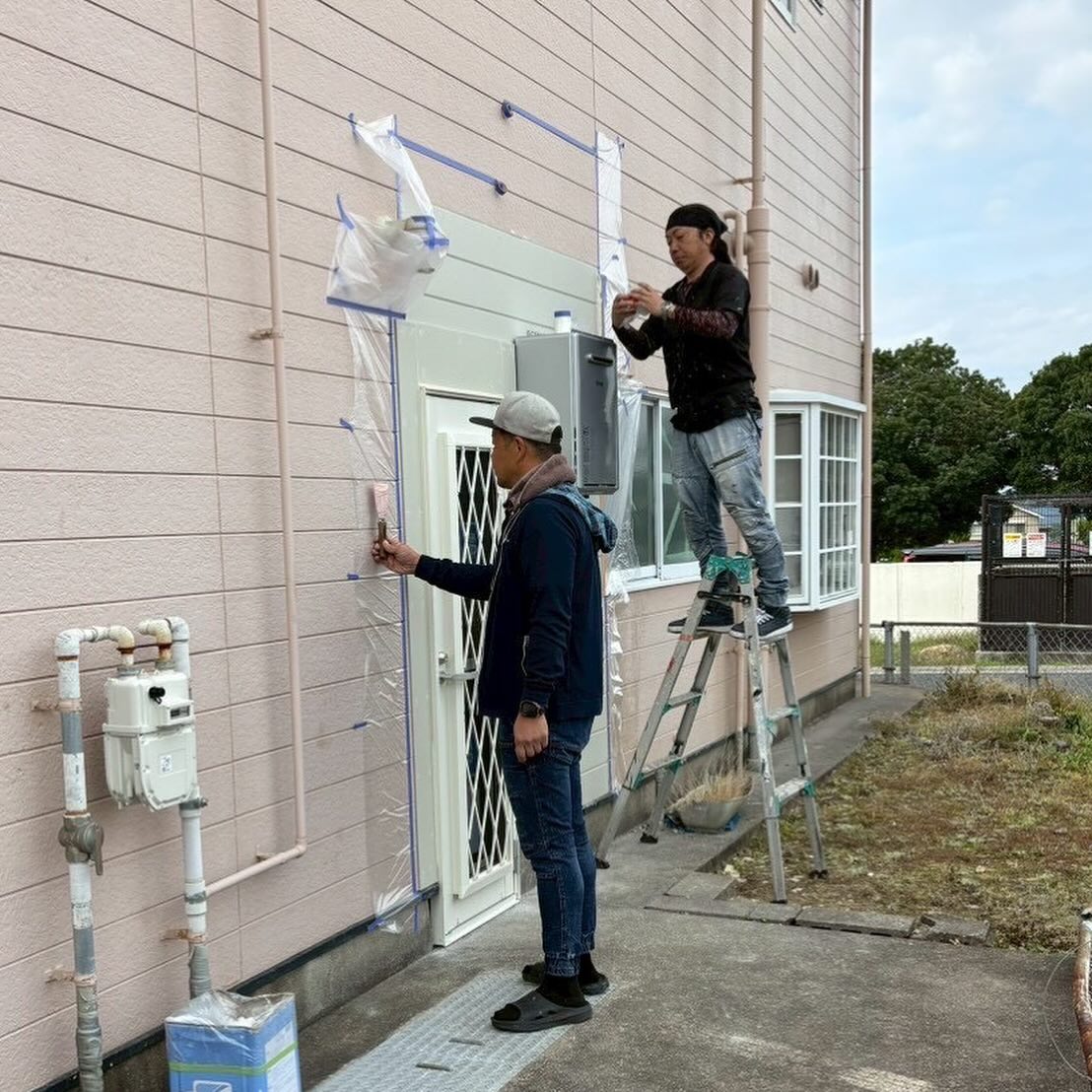 カチオンシーラー(下塗り)後、エコフレッシュ合成樹脂エマルションペイントを2回塗りしました。