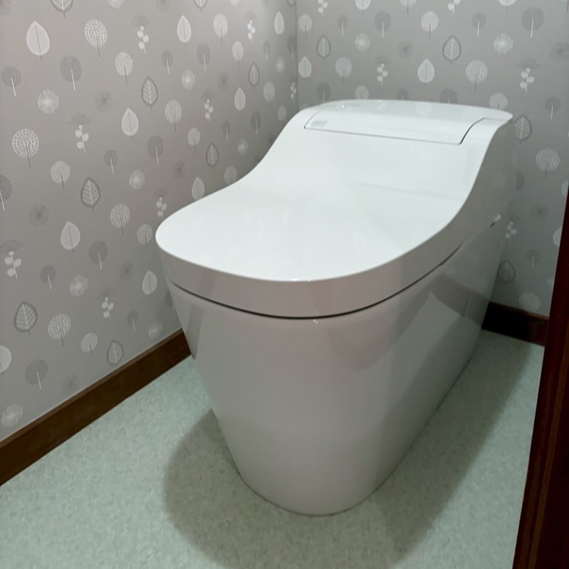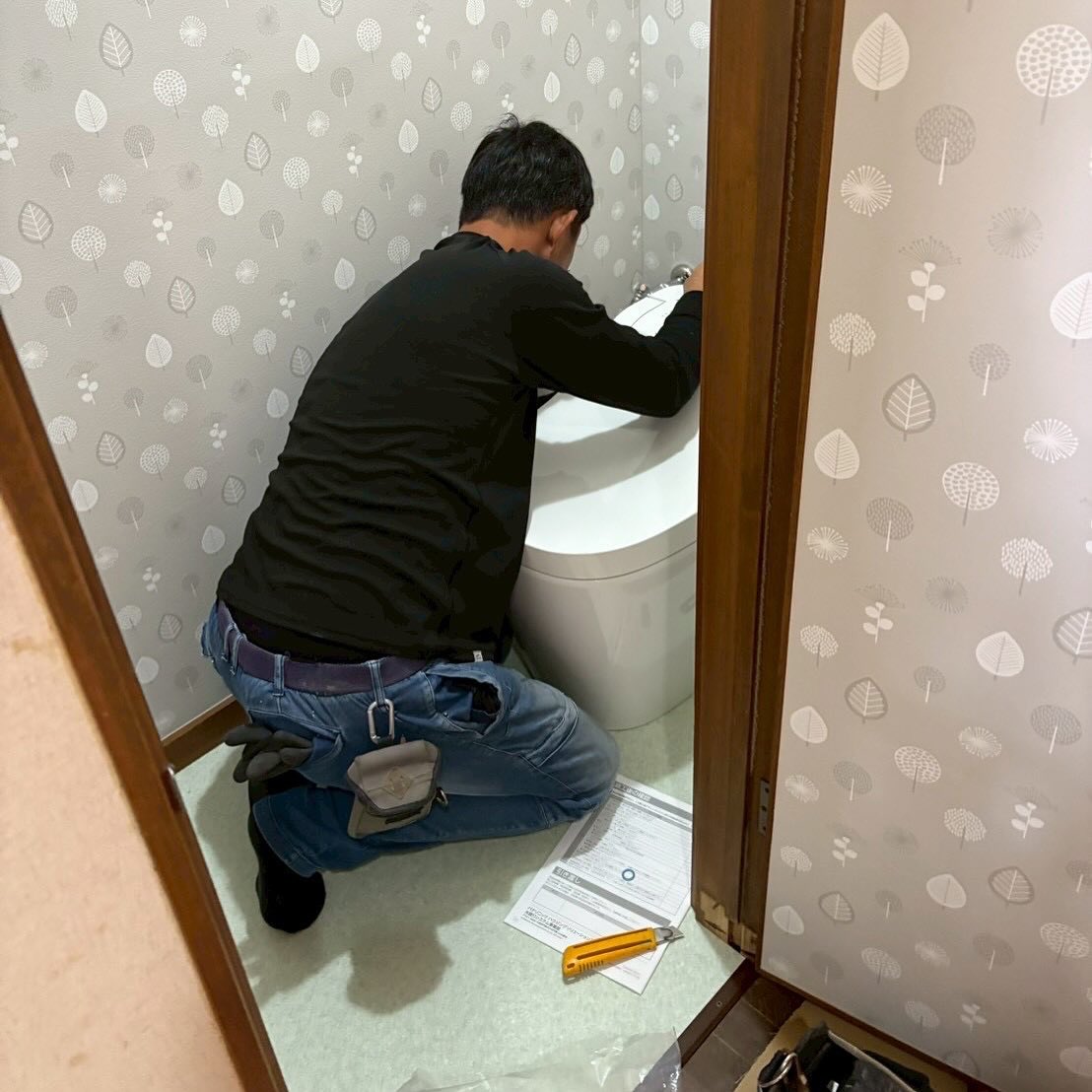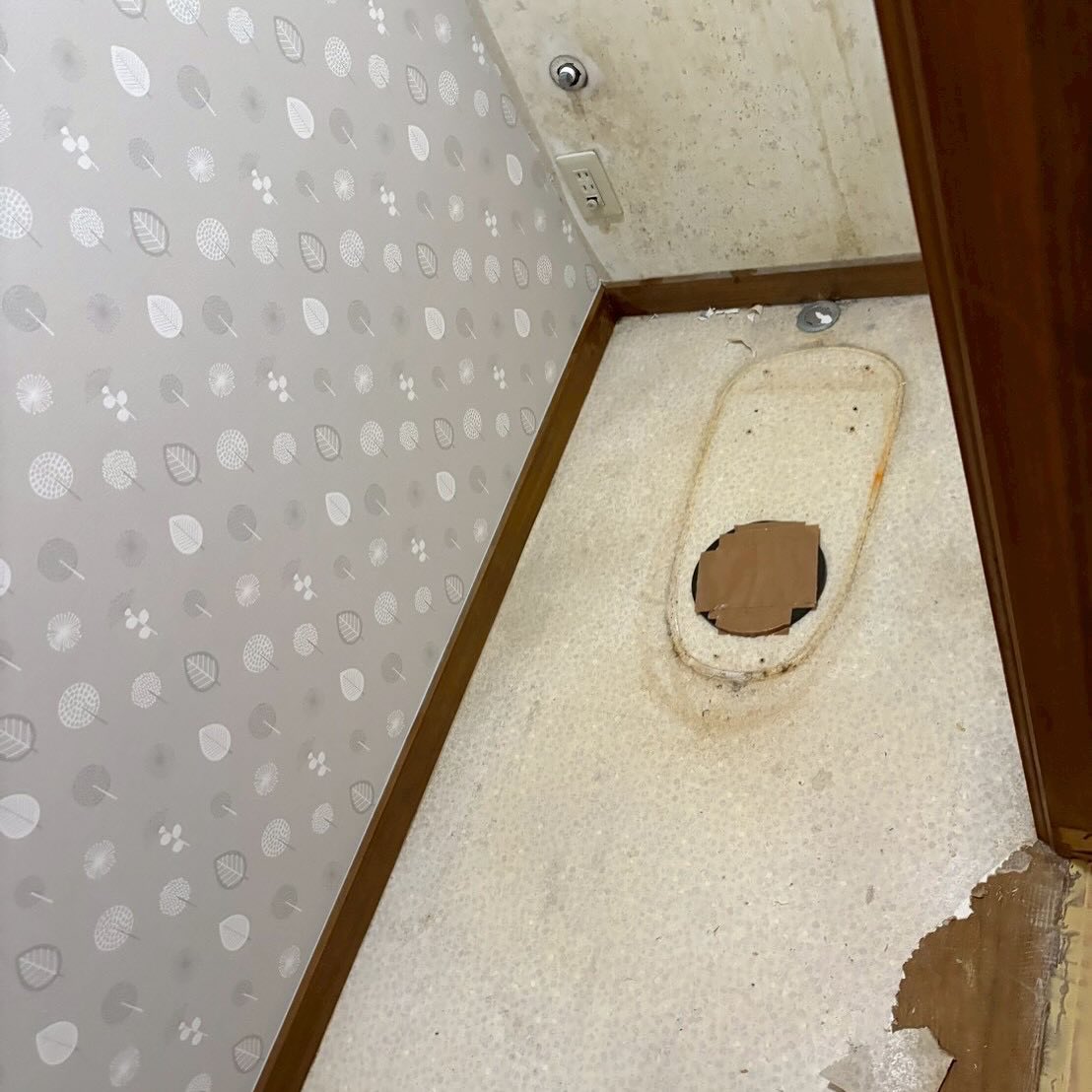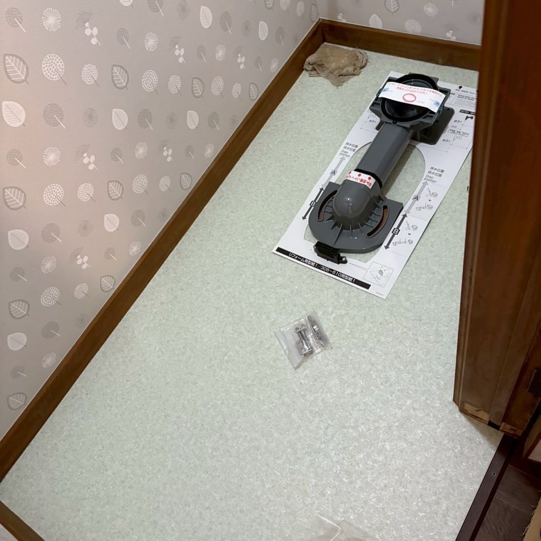 トイレの交換工事のご依頼をいただいたため、内装工事もあわせて行いました。