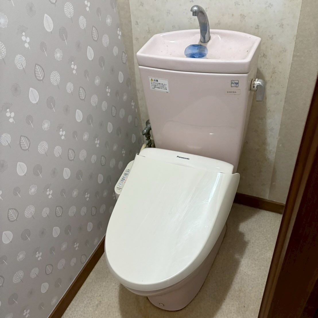 洗面所の水漏れ調査依頼からの、トイレもだいぶ古くなっているので一緒に交換・クロス工事もして欲しいとのご依頼でした。
