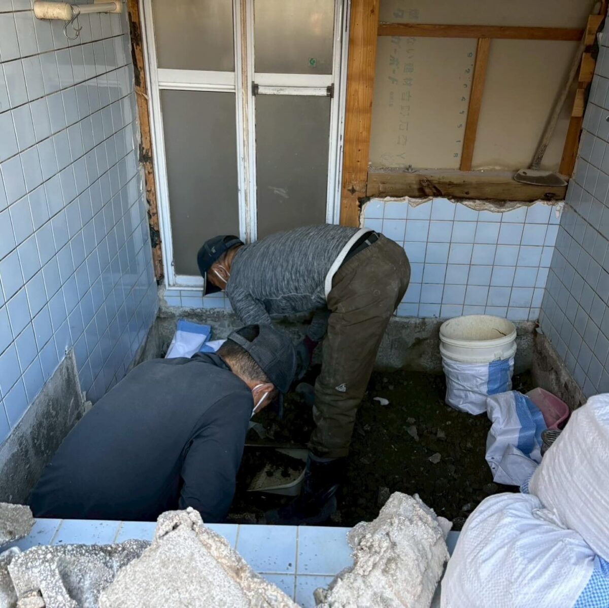 浴室はタイルからシステムバスに交換し、洗面脱衣所の床もシロアリの被害に合いましたので、床の張替え工事をしました。