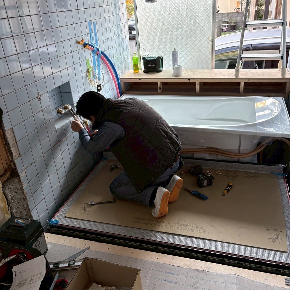 浴室がタイル張りで冷たくて寒いということで、システムバスへの交換工事をしました。